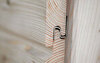 geschlossene Doppel-Rhombus-Fassadenschalung für horizontale Montage, Leistenoptik, regionale Douglasie, praktisch astrein, keilgezinkt, stehende Jahrringe (Rift/Halbrift), aus eigener Produktion, profiliert für einfache, verdecke Montage mit Dekora-Verbindern (ebenfalls erhältlich).